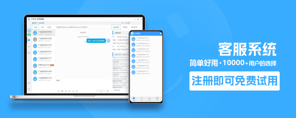在线客服系统前端接待采用电脑pc+web自适应显示。后台支持电脑+移动登录,网站只需嵌入一段js或修改客服导向地址即可快速接入! 功能:消息已读未读、机器人、消息提示、消息撤回、访客等功能。
